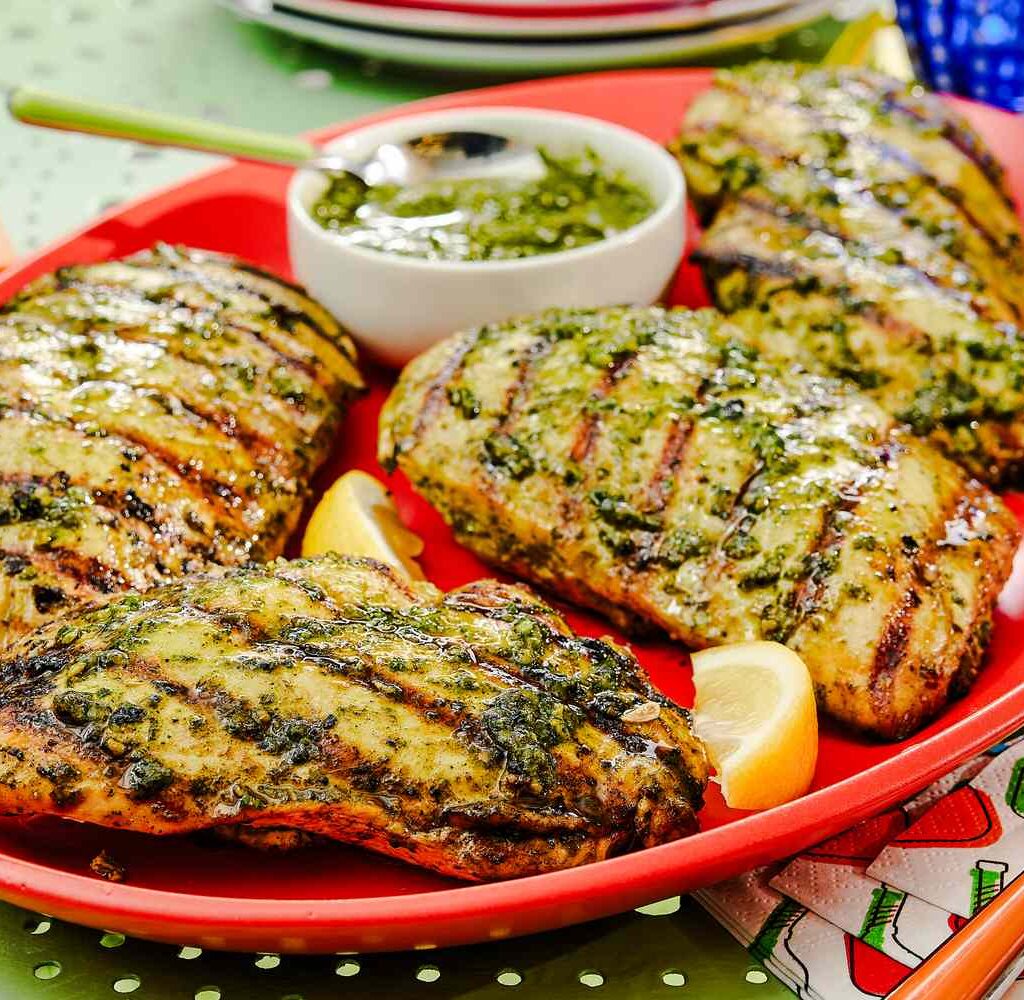 Summer grilling at its best. The pesto creates beautiful char marks and keeps the chicken incredibly juicy.