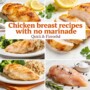 This recipe uses basic herbs and garlic to create Chicken breast recipes with no marinade that taste like you spent hours on it. You’ll need two chicken breasts, one tablespoon of olive oil, one teaspoon of salt, half a teaspoon of black pepper, one and a half teaspoons of garlic powder, one teaspoon of dried Italian herbs or a mix of basil, oregano, and thyme, and half a teaspoon of onion powder.