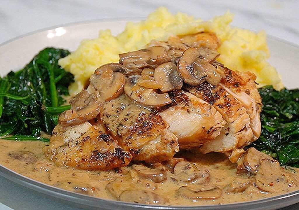 Mashed potatoes complement the smooth, creamy texture of the chicken sauce. The combination is rich, satisfying, and comforting. It works especially well for cozy dinners.