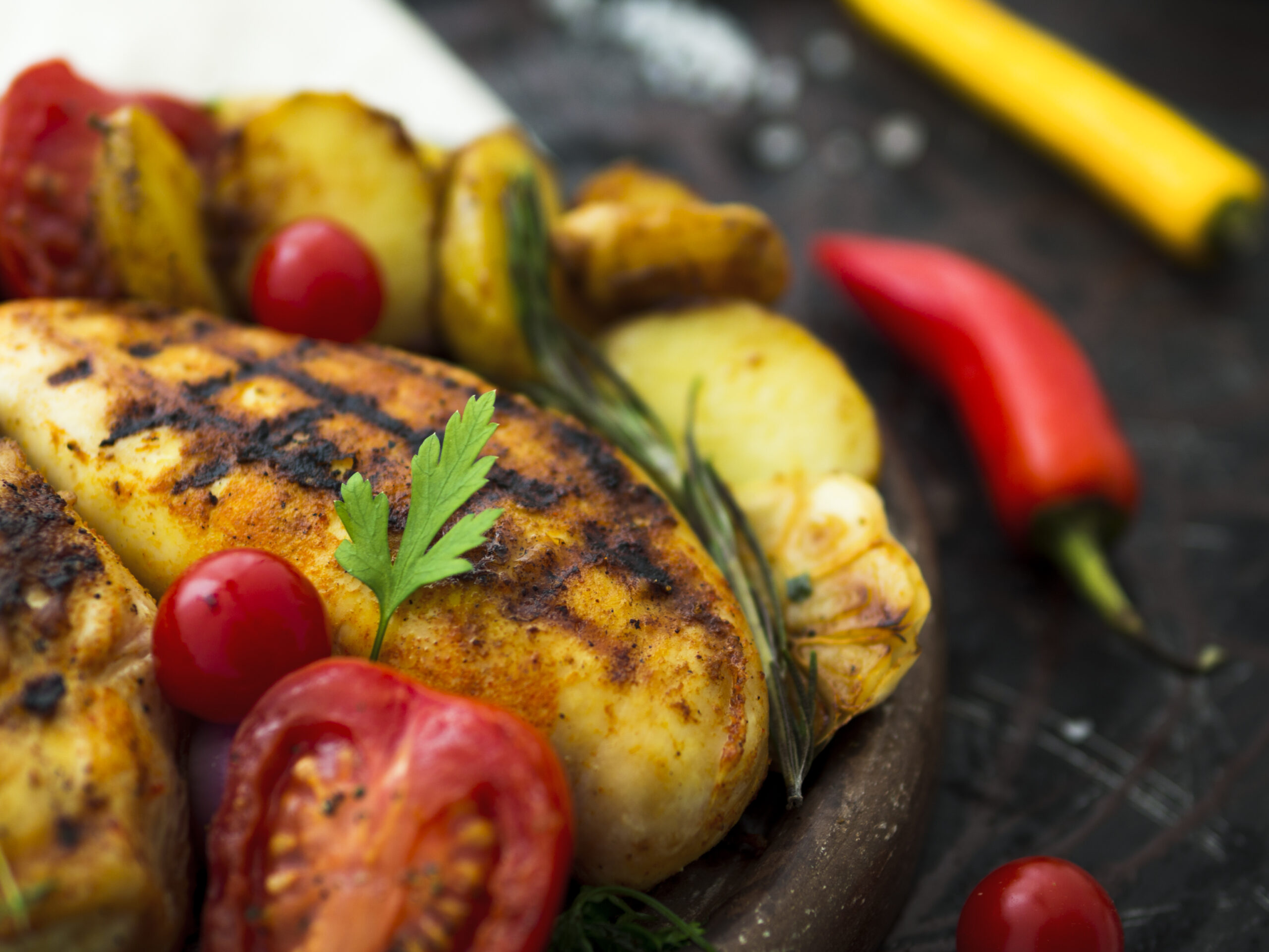 If grilling vegetables, place them in a grill basket or on a grill mat and cook alongside the chicken, stirring occasionally until charred and tender.