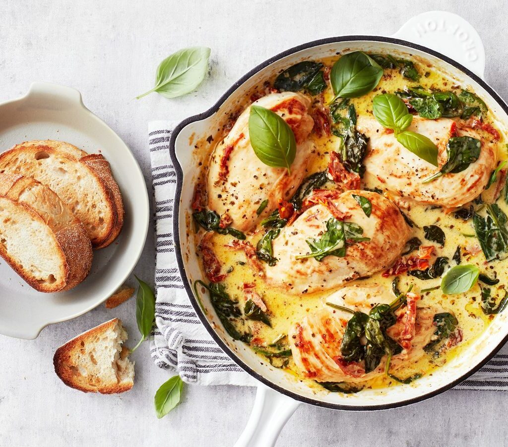 - Tuscan Chicken: Creamy and includes spinach and sun-dried tomatoes.