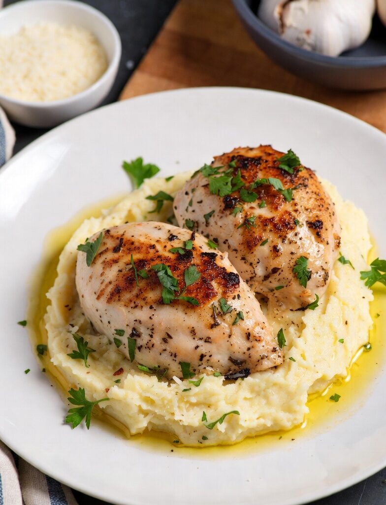 - Oven-Baked Garlic Butter Chicken: Serve with steamed vegetables, mashed potatoes, or a side of rice.