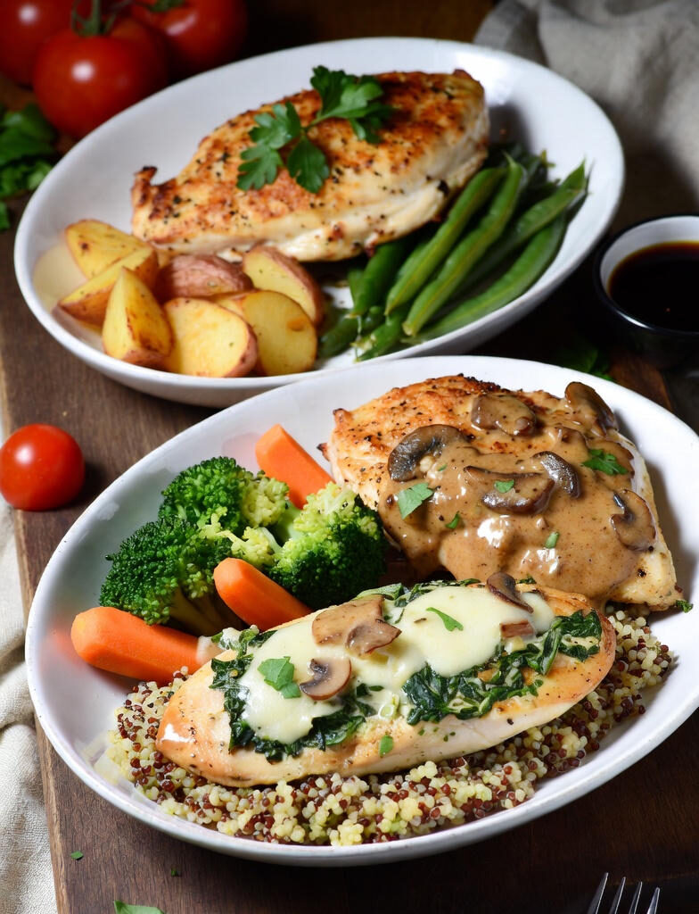 Oven baked chicken breast recipes pair well with steamed vegetables, rice, quinoa, salads, pasta, or sandwiches.