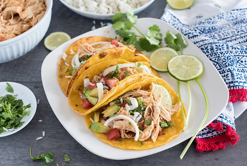 Taco seasoning, tomatoes, and chili spices make flavorful shredded chicken.